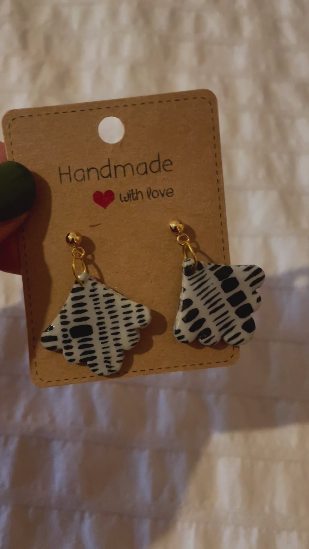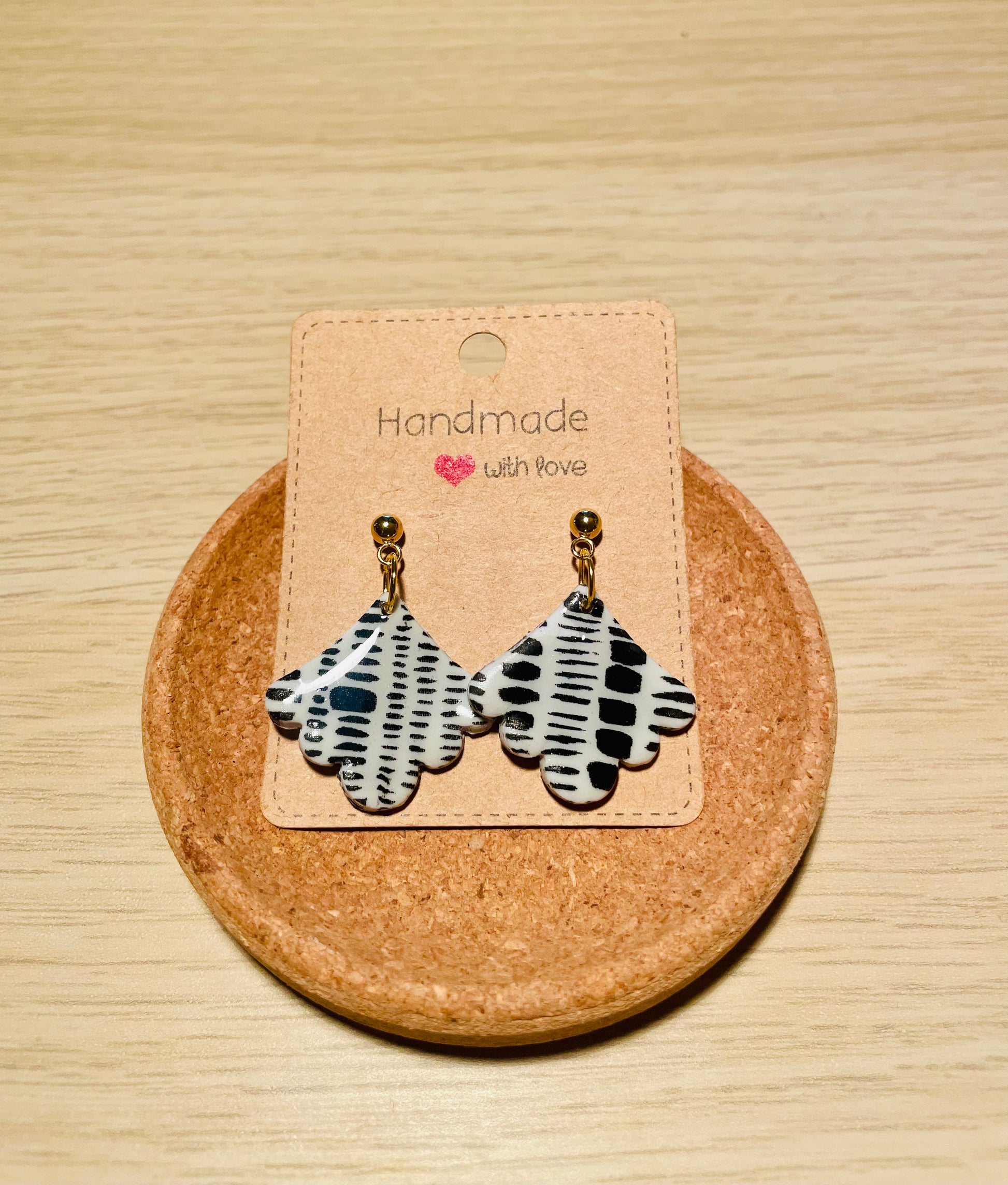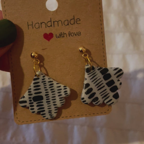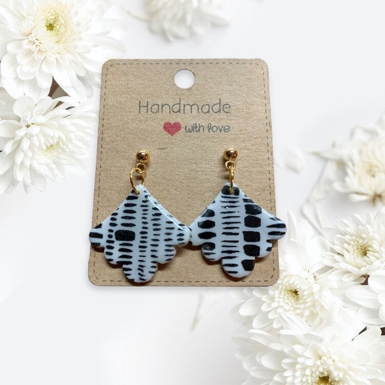 Fimo hellgrau mit schwarzem Muster,Ohrstecker Edelstahl goldfarben