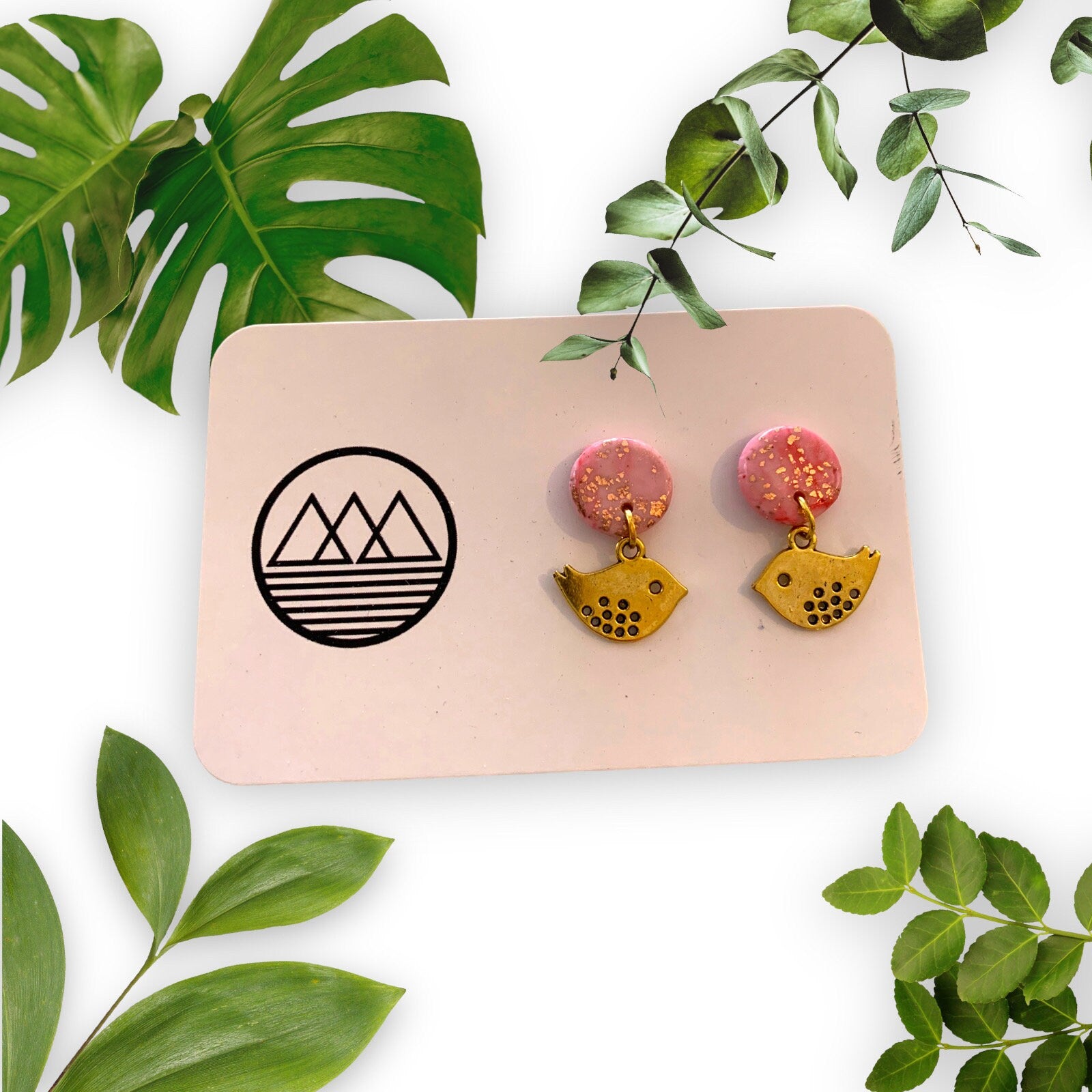 rosa mit Blattgold, Vögeli aus Edelstahl goldfarben