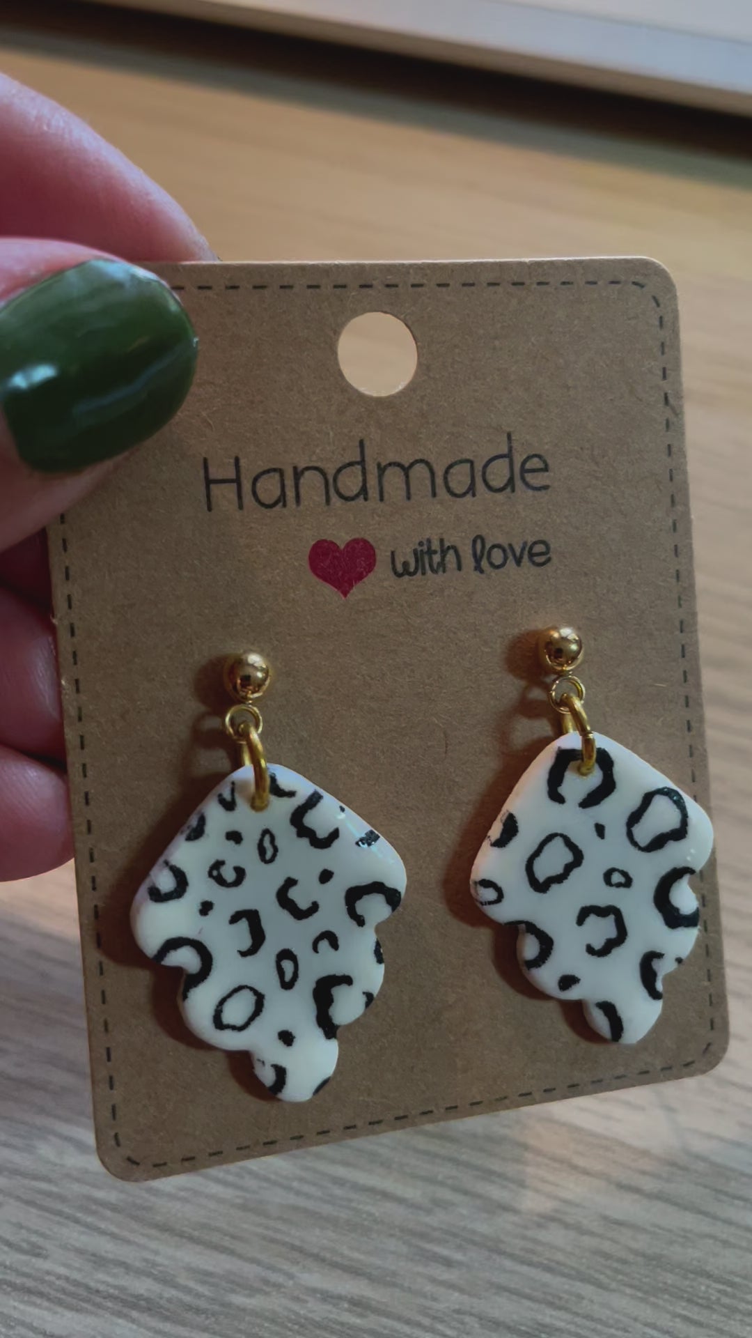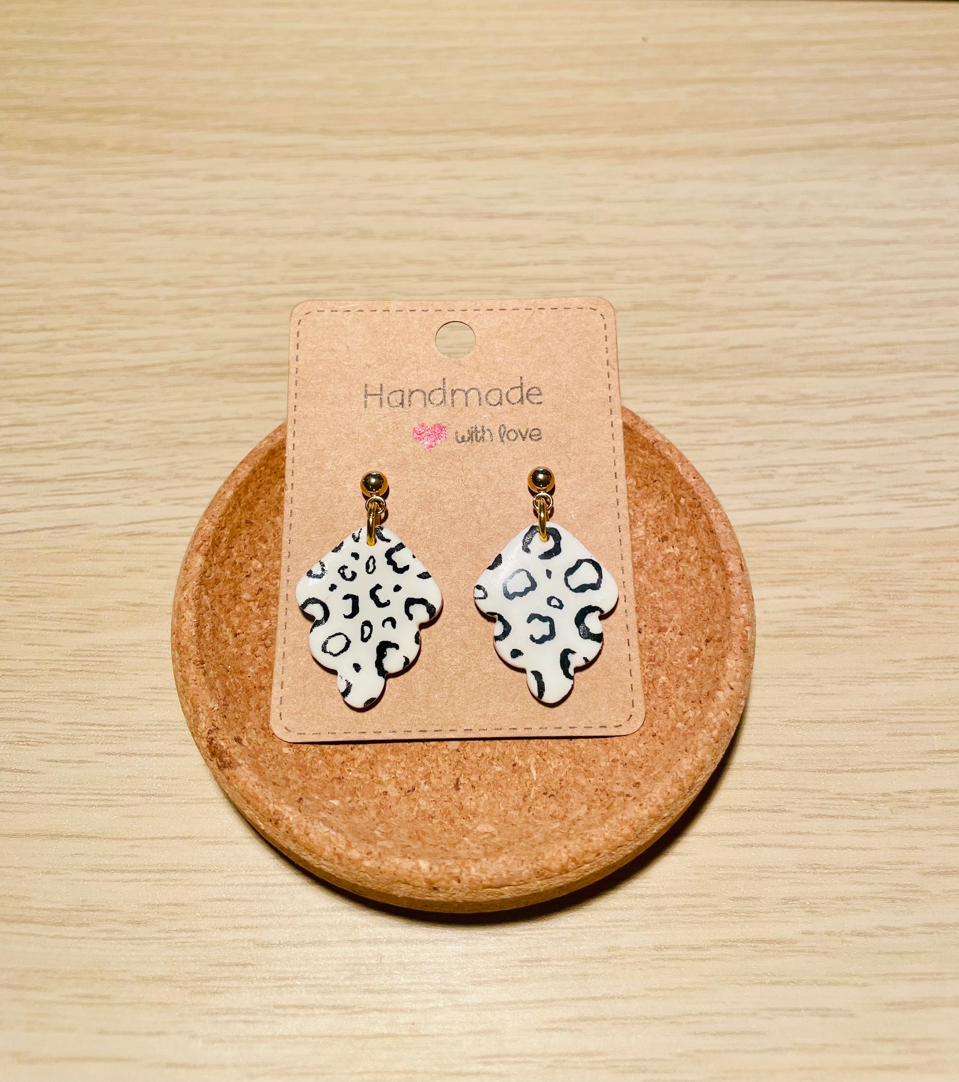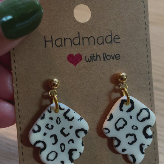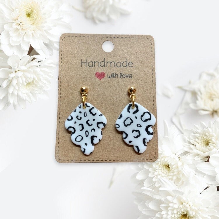 weiss mit schwarzem Leo-MusterOhrstecker aus Edelstahl, goldfarben